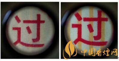 真品卷煙商標印刷采用凹印,兩種顏色交界位置會有“鋸齒”痕跡。